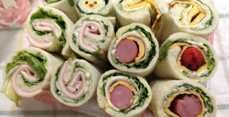 お花見やピクニックに最適な、リーフレタスの緑が映える可愛いくるくるパン。具材を乗せてくるっと1週巻いた、まるでサンドイッチをロール状にしたようなパンです。リーフレタスは葉が柔らかく一般的なレタスと比べて栄養価が高いので野菜が不足しがちなお弁当に取り入れやすくおすすめな食材です。たっぷりのレタスと色々な具材を組み合わせてくるくるっと楽しく作ってみてください♪ 合わせて読みたい♪レタスを使った料理→彼氏に作ってもらいたい!普通のより好きかも…レタスオムライス 材料 今回使用したもの 食パン 5枚切り(半分に切って10枚切りに) リーフレタス 10枚 ウインナー 7本 ハム 8枚 スライスチーズ 8枚 薄焼きたまご 2枚 うずらのたまご 6個 のり 少し マヨネーズ 適量 マーガリン 適量 からし 適量 作り方 リーフレタスは水で軽く洗い、キッチンペーパーで水気を良く拭き取る(大切!) 薄焼きたまごを2枚作る 5枚切りの食パンを半分に切り10枚切りにし、耳を切り落とす めん棒でパンをコロコロ軽く潰す (大切!) パンにマーガリンを気持ち多めに塗り、リーフレタス、マヨネーズを気持ち多めにかける。お好みでからしも〇 ★具材はパンの巻き終わり部分には乗せない(大切!) 色々な具材を組み合わせる ハム+チーズ、たまご+チーズ、ハム+うずら、たまご+チーズ+ウインナー、全部のせ... 大きめのラップを約20cm出して、別の場所に1枚出しておく 具材を乗せたパンを手前から巻いていき、出しておいたラップに乗せる ラップを巻く 下のラップをぐぐっと引っ張ってラップを締めて形を整え、両端はくるくる絞る 具材とパンを馴染ませ形を安定させるために冷蔵庫で15分程度落ち着かせた後、ラップごと包丁で切る ラップを剥がして、お弁当箱に詰める 数をこなしていくうちに上手になります(^o^) ポイント 具材の水分は良く拭き取る 巻くときにパンにヒビが入らないように、めん棒で軽くつぶす マーガリンとマヨネーズは濃いめが美味しい 具材はパンの巻き終わり部分は乗せない←端まで乗せると、巻くときに具材が出てしまう 初めて作った時は上手に出来るか不安でしたが、包丁で切ったらこの素敵な断面が出迎えてくれました!皆様も気軽に楽しんで作ってみて下さいね。お弁当箱は高さがあるのがおすすめです。画像のパックは蓋が閉らず、ラップをかけて対策しました^_^; こちらの記事もおすすめ♪→バレンタインは、心と体がよろこぶおうちごはん read more