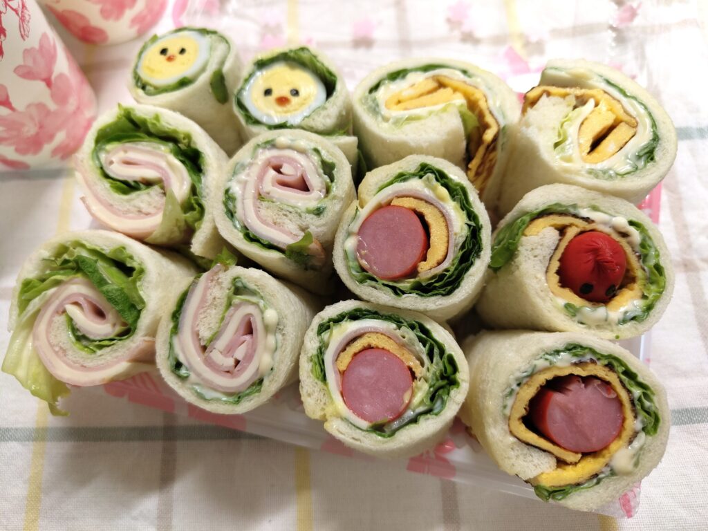 お花見やピクニックに最適な、リーフレタスの緑が映える可愛いくるくるパン。具材を乗せてくるっと1週巻いた、まるでサンドイッチをロール状にしたようなパンです。リーフレタスは葉が柔らかく一般的なレタスと比べて栄養価が高いので野菜が不足しがちなお弁当に取り入れやすくおすすめな食材です。たっぷりのレタスと色々な具材を組み合わせてくるくるっと楽しく作ってみてください♪